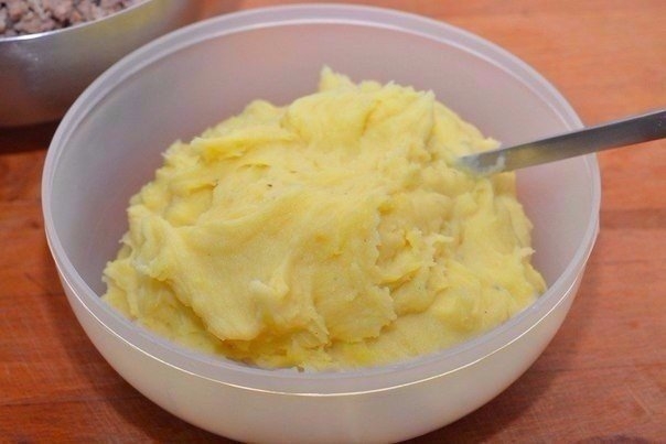 2. Сварите пюре. Когда картошка сварилась, слейте всю воду, взбейте до состояния пюре, добавьте яйцо, соль, перец. Постепенно добавьте муку. Муки может уйти больше или меньше, картофельное тесто не должно сильно липнуть к рукам.