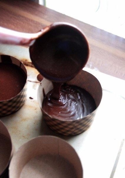 3. Тесто разлейте по формочкам, заполняя на 2/3. Выпекайте около 25 минут так, что при касании верхушки капкейков слегка колыхались. Остудите.
