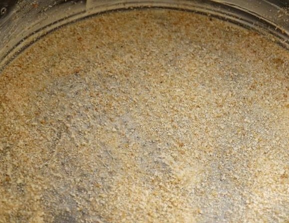4. Аккуратно перемешать ложкой, а затем доработать миксером на низкой скорости. Тесто должно получиться по консистенции как густая сметана. Форму для выпекания смазать сливочным маслом, а сверху посыпать панировочными сухарями.
