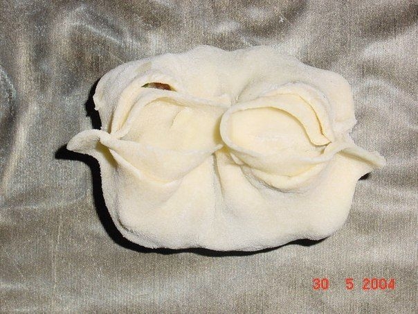 Теперь лепим. Склеиваем противоположные стороны раскатанной лепешечки.Потом еще раз.