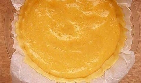 4. Форму для запекания застилаем пекарской бумагой. Выкладываем в нее две трети теста и пальцами распределяем его по дну формы, попутно формируя бортики.Выкладываем на тесто лимонный крем.Оставшуюся часть теста раскатываем и нарезаем на полоски.Выкладываем полоски на пирог в виде сетки.Выпекаем лимонный пирог в разогретой до 180°C духовке 30 минут. Готовый пирог охлаждаем, а потом подаем к столу.